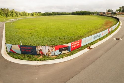 Not just a construction buffer but an excitement builder, the Collective fence screening goes beyond veiling what will soon be Wendell Falls’ second commercial area; it delivers an enticing vision of what residents can expect to come at Wendell Falls.